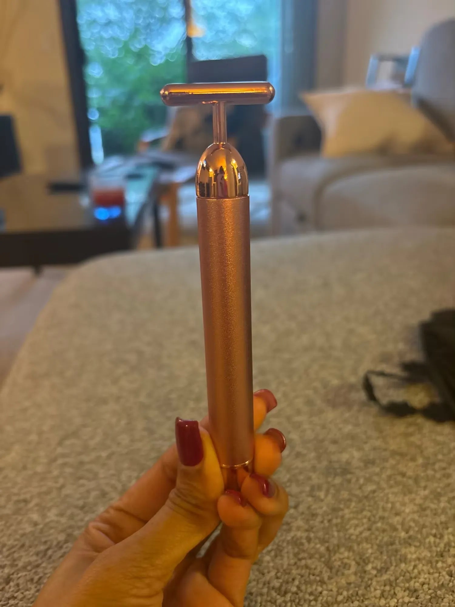 El rodillo de oro realmente ha mejorado mi rutina de cuidado de la piel. Es súper elegante y realmente marca la diferencia en la textura de mi piel.